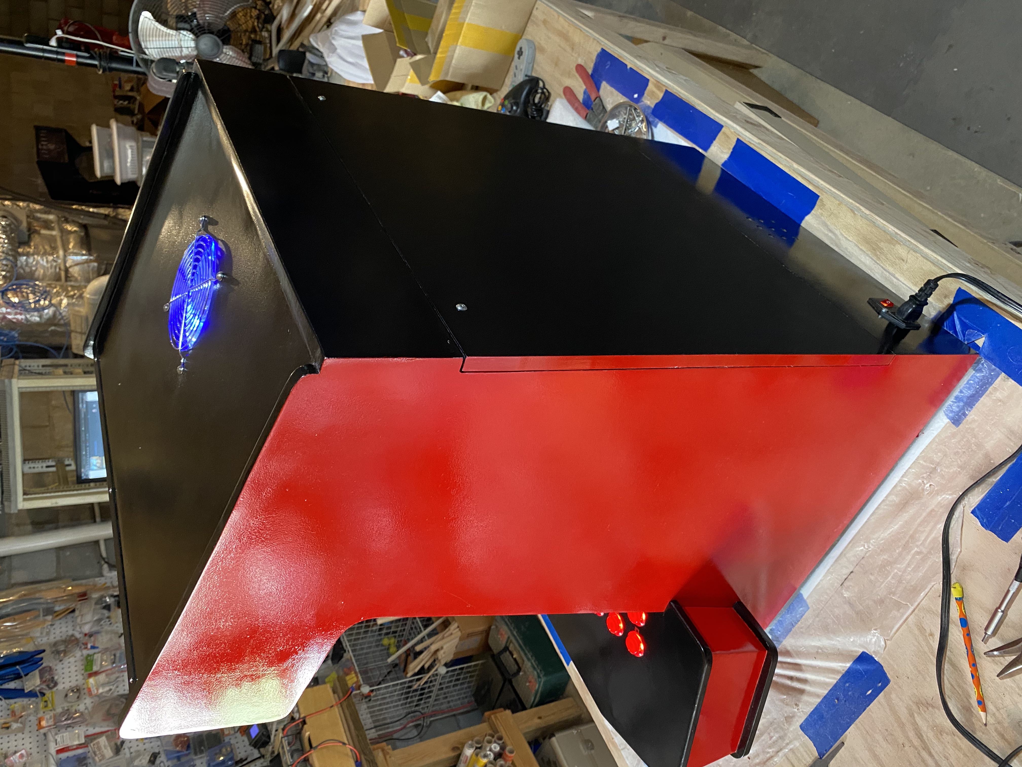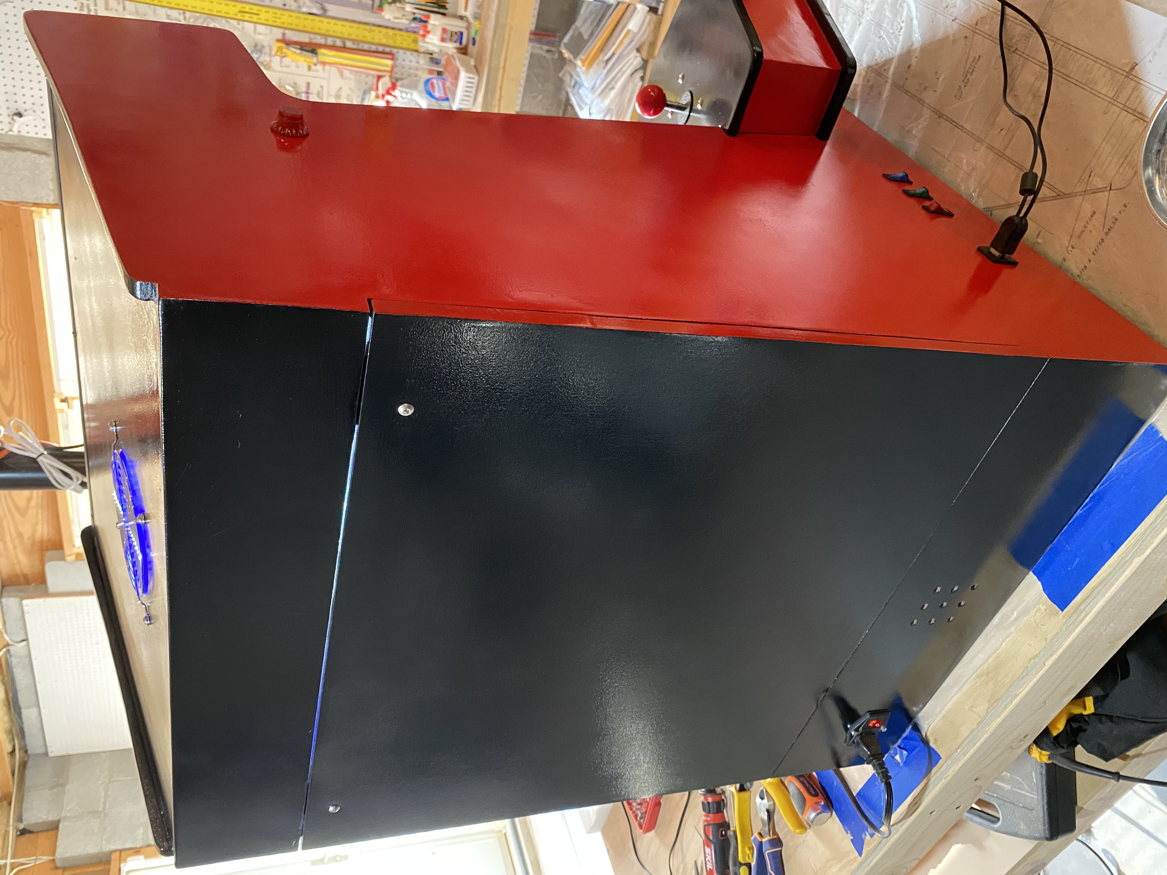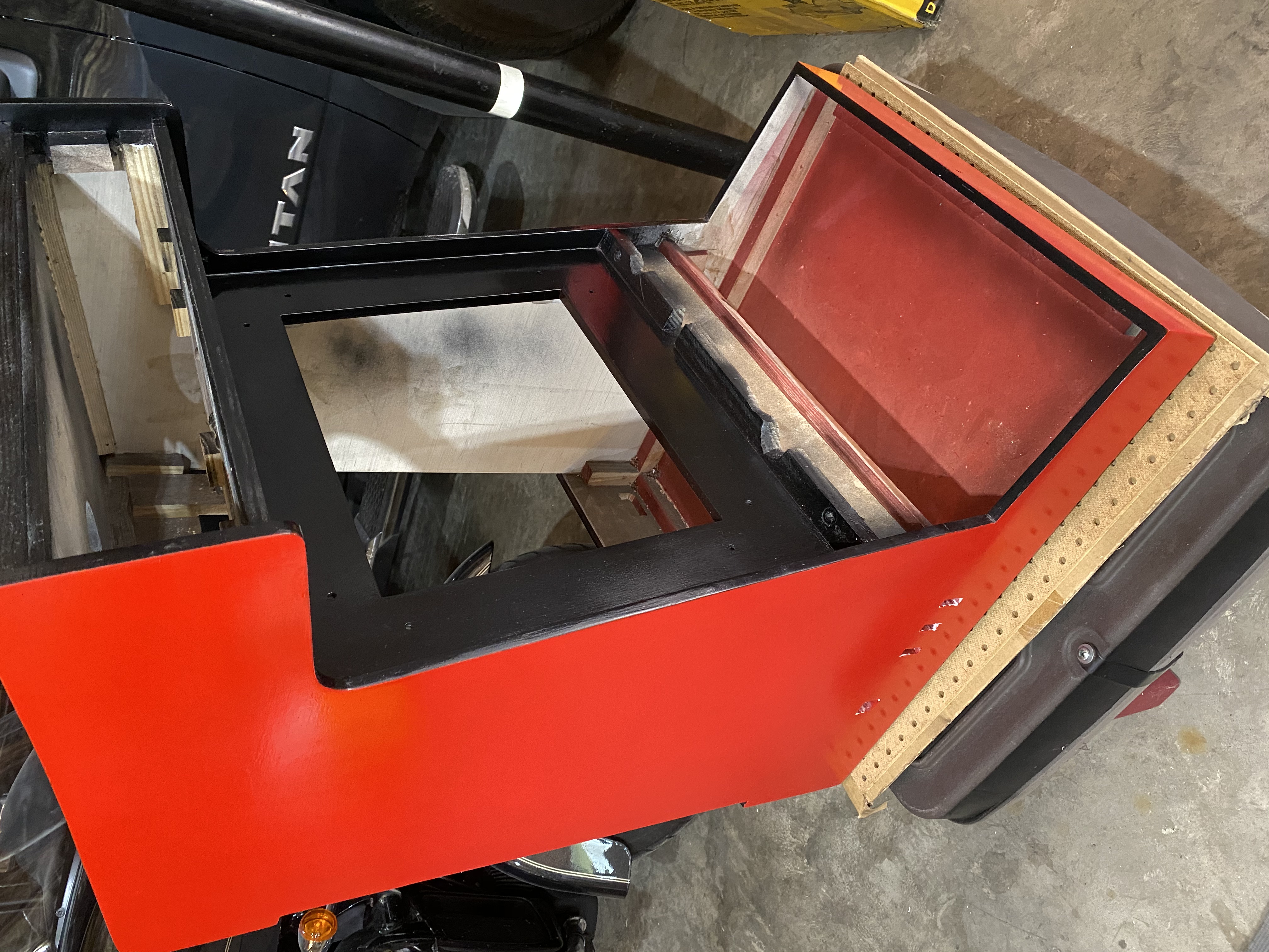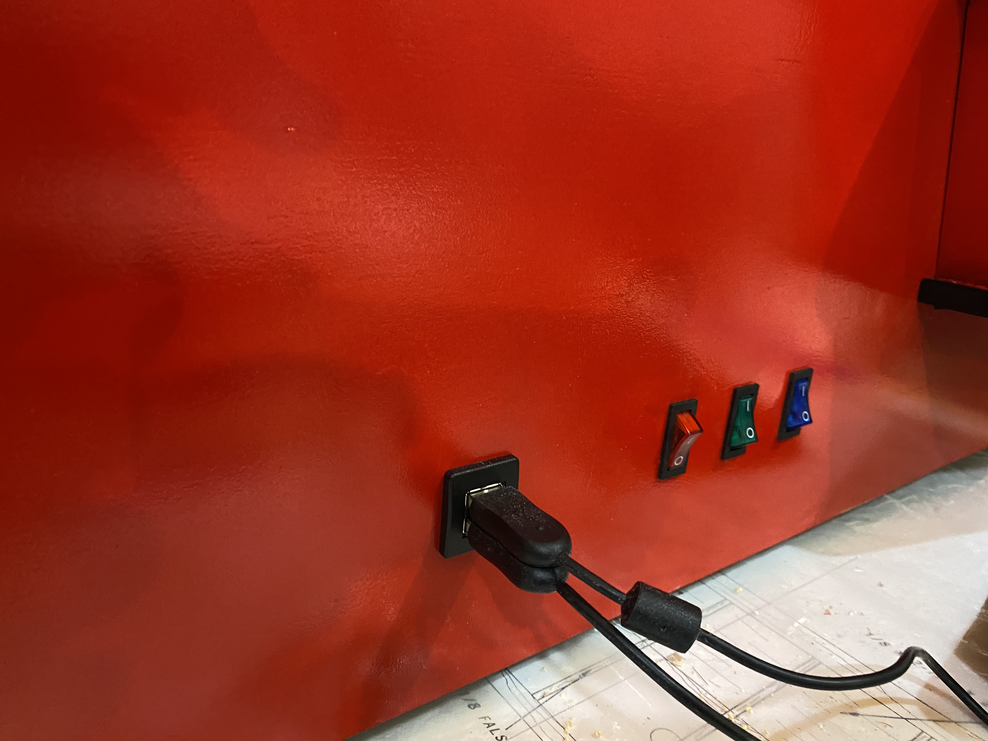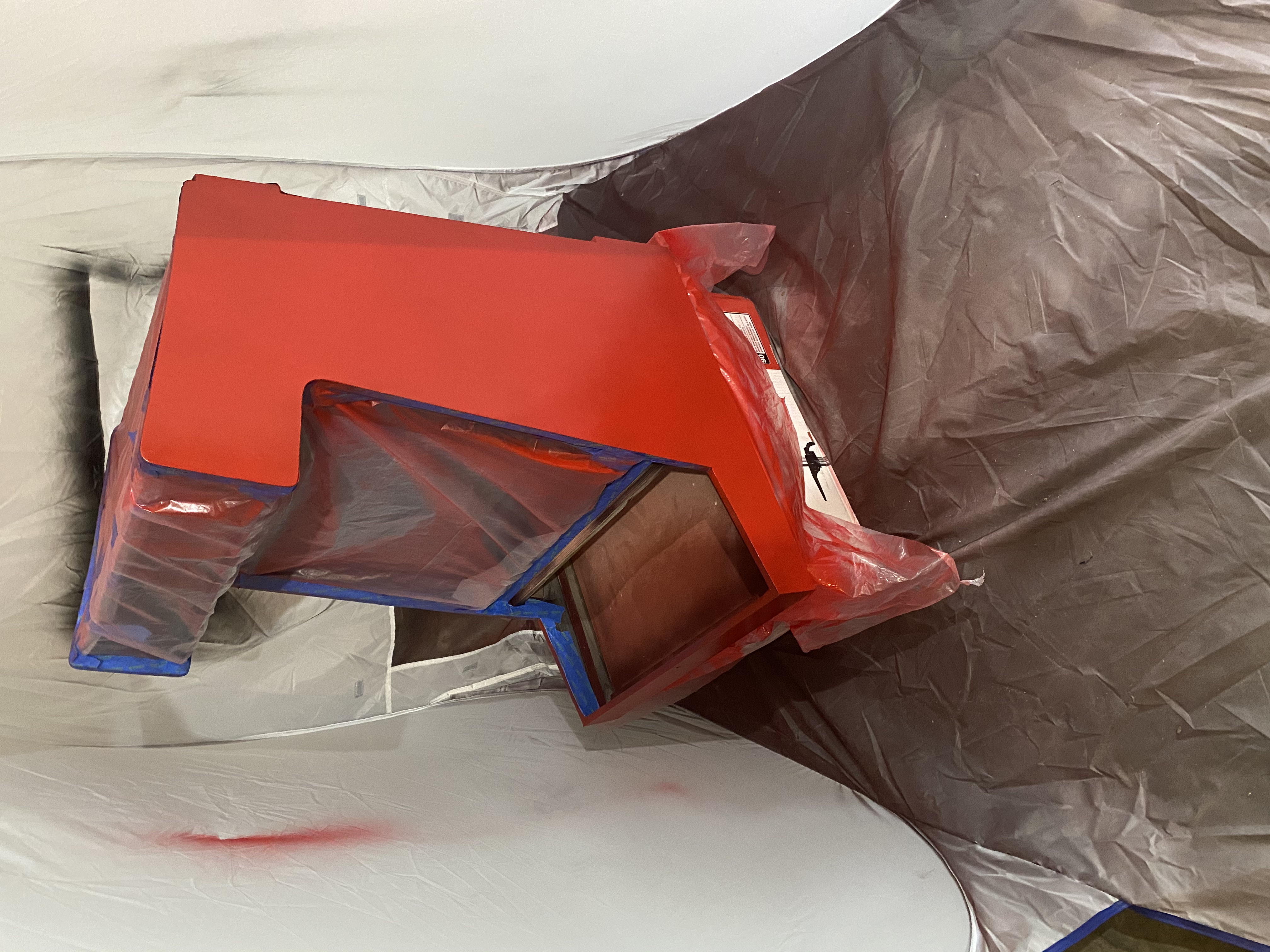 Red paint is done on the main cabinet piece.