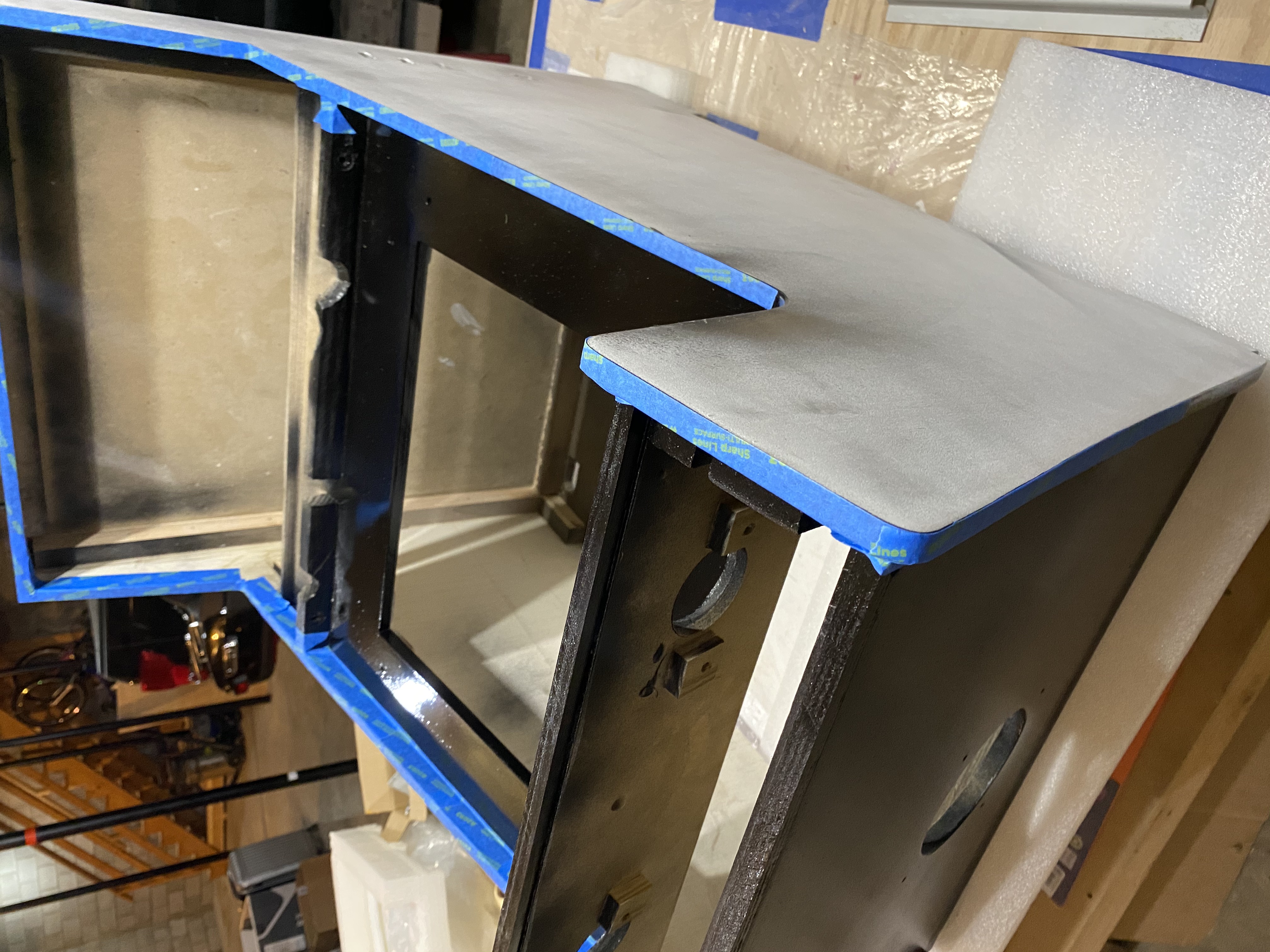 The black paint is done and it's time to tape things up in preparation for the red paint.
